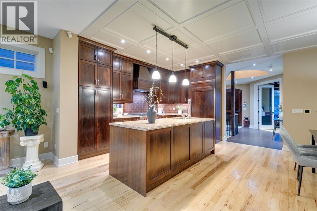 A true inner city gem in the heart of Hillhurst. This exceptional home offers a rare blend of timeless elegance, quality craftsmanship, and standout curb appeal, just steps from Kensington Village, Freshco, the Bow River pathways & downtown. From the moment you enter, this home makes an impression with its grand foyer featuring a curved wooden staircase, skylight, and expansive windows that fill the space with natural light, all enhanced by its charming location across from the lawn bowling park. Located just off the homes' entrance, you'll find a private office with French glass doors, coffered ceilings, and custom built-ins that overlook the peaceful green space, ideal for those working from home. The main living area is designed for both entertaining and daily living. Rich and timeless hardwood floors lead into a stunning chefâs kitchen featuring high end panelled appliances, including a Wolf 6 burner gas range, Sub-Zero refrigerator, custom built cabinetry, and a large island ideal for gatherings. The adjoining dining area offers an elegant space to host, while the living room centres around a beautiful stone fireplace and opens seamlessly to the sunny south facing backyard. An enclosed mudroom with built-ins offers both style and practicality, making it easy to come and go from the garage while keeping everything organized. Upstairs, youâll find three spacious bedrooms and a well appointed laundry room. The primary suite is a true retreat, complete with downtown views, a two way fireplace, and a spa-inspired ensuite featuring a deep soaker tub, steam shower, dual vanities, and a custom walk-in closet. The fully developed lower level adds even more versatility, with a cozy family room, games area, wet bar, and a beautifully designed wine room. A fourth bedroom, full bathroom, and dedicated home gym complete this level, offering space for guests, relaxation, and wellness. Outside, enjoy a private, south exposed yard with a pergola-covered deck, two gas lines for outdoor entertaining, and low-maintenance landscaping, all set against an exterior finished entirely in aggregate. Additional features include air conditioning, in-floor heating in the basement, foyer, and bathrooms, a gym-sized steam shower in the basement, a new washer and dryer, custom millwork, 9ft doors, vaulted ceilings, hidden safe room, and an oversized heated garage. Located in one of Calgaryâs most sought after communities, this home offers unmatched walkability and lifestyle, just moments from shops, restaurants, boutiques, schools, hospitals, and the river pathways. A rare opportunity to own a truly exceptional home in Hillhurst. (id:24240)