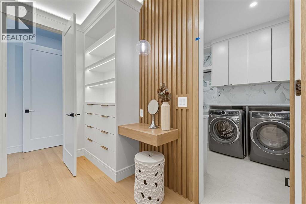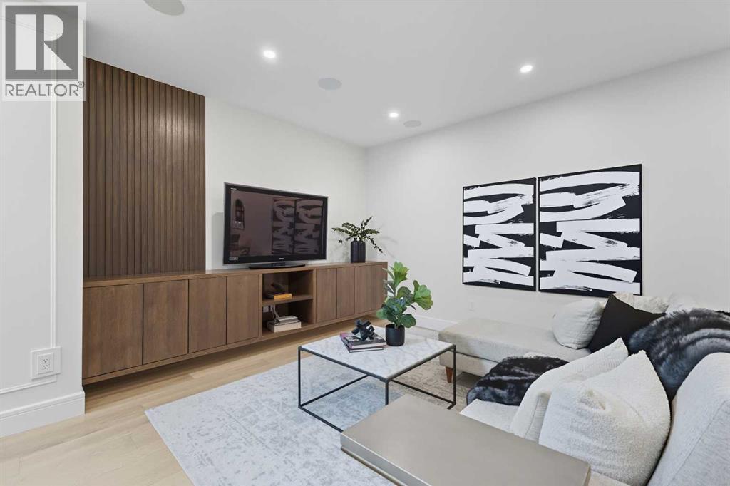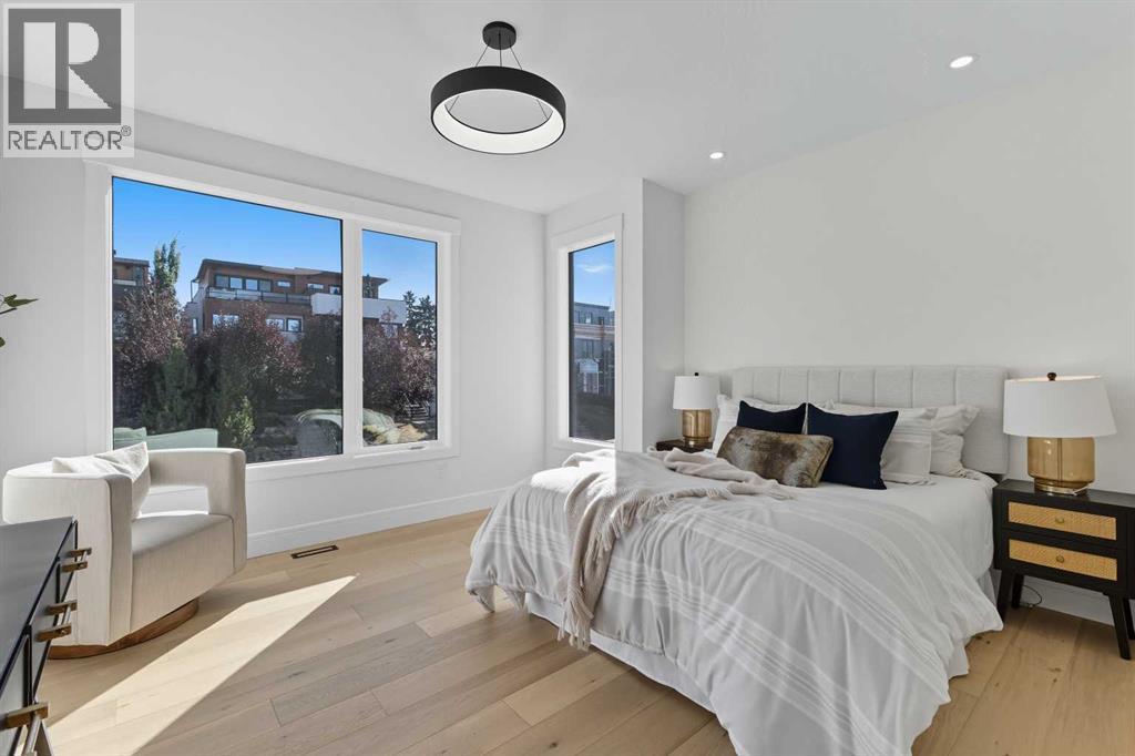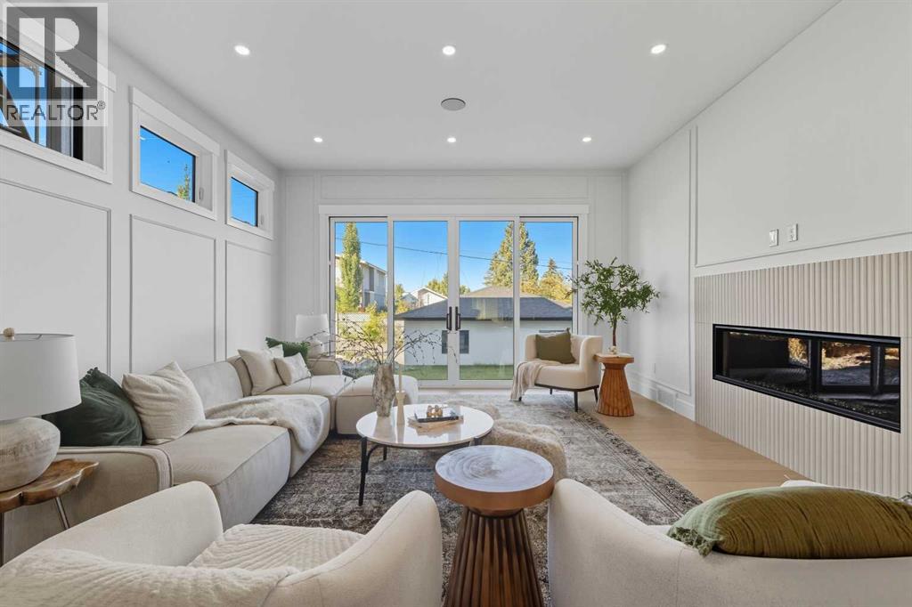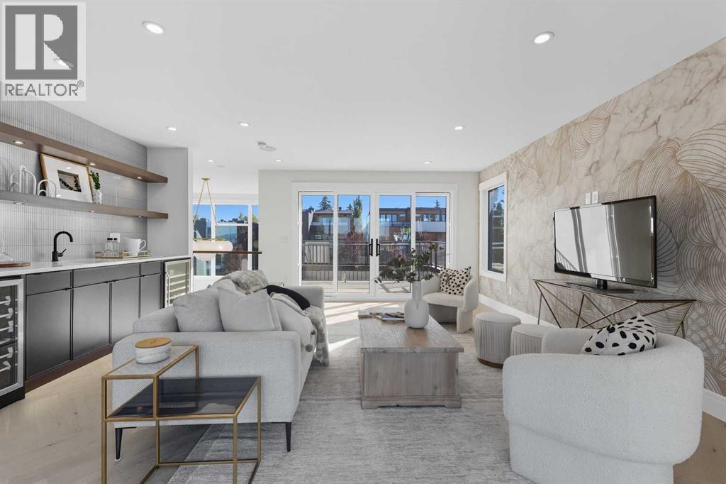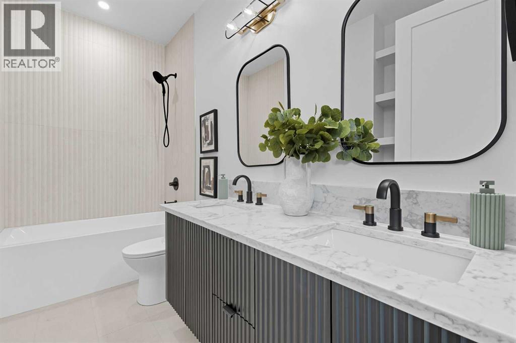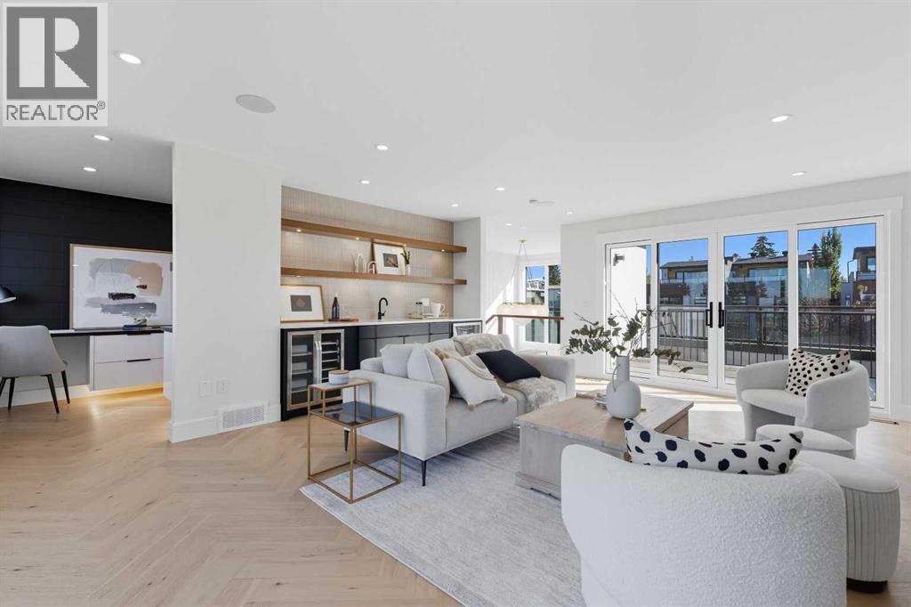 Perched on coveted 29th Avenue with UNPARALLELED CITY, DOWNTOWN & MOUNTAIN VIEWS amongst multi-million dollar homes, this exquisite, brand new 3+1 bedroom home is situated on a 33âx125â lot & exudes the epitome of luxury, offering over 4500 sq ft of developed living space. The open, airy main level presents engineered hardwood floors, lofty ceilings & chic light fixtures, showcasing a grand foyer with floor to ceiling Rift cut oak cabinets & textured feature wall that leads to a kitchen thatâs impeccably finished with chamomile butter quartz counter tops, large island/eating bar, fluted cabinets with spice drawers, corrugated tile backsplash, convenient pot filler & stainless steel appliance package. A walk-in butler pantry with extra utility sink & extra storage thatâs perfect for storing small appliances is an added convenience. The spacious dining area with built-in hutch & 2 paneled beverage fridges, provides ample space to host family & friends. The living room is anchored by a feature fireplace & wainscoted feature wall. Completing the main level, is a handy mudroom with hexagon tile floors, built-in cabinets & hooks plus a 2 piece powder room. An elegant open riser staircase with glass inserts leads to the second level that hosts 3 bedrooms, a 5 piece main bath & laundry room with sink, lots of storage & hanging racks. The primary retreat is a true private oasis, featuring a sitting area with cozy double sided fireplace, to-die-for walk-in closet with laundry room access & zen-like 6 piece ensuite with heated floors, large vanity with dual sinks, relaxing freestanding soaker tub & rejuvenating steam shower. A third level loft with magnificent feature wall, wet bar & access to north & south decks with UNMATCHED MOUNTAIN VIEWS plus CITY & DOWNTOWN VISTAS is the ideal space for entertaining. A den/study area & 2 piece powder room are the finishing touches to the third level. Basement development includes a large family/media room with wet bar & charming wine roo m â perfect for game or movie night. A dedicated home gym with glass doors, epoxy flooring, mirrored wall & electrical for a TV delivers the perfect setting early morning workouts. The fourth bedroom with walk-in closet & large spa-like 3 piece bath with steam shower complete the basement. Other notable features include built-in speakers on each level, wainscoting detail throughout plus roughed in A/C. Outside, enjoy aggregate walk-ways & private back yard with patio & access to the double detached garage with rough in for heat.. This outstanding inner city home is located close to trendy Marda Loop, excellent schools, shopping, public transit & has easy access to 33rd & 26th Avenues & Crowchild Trail. (id:24240)